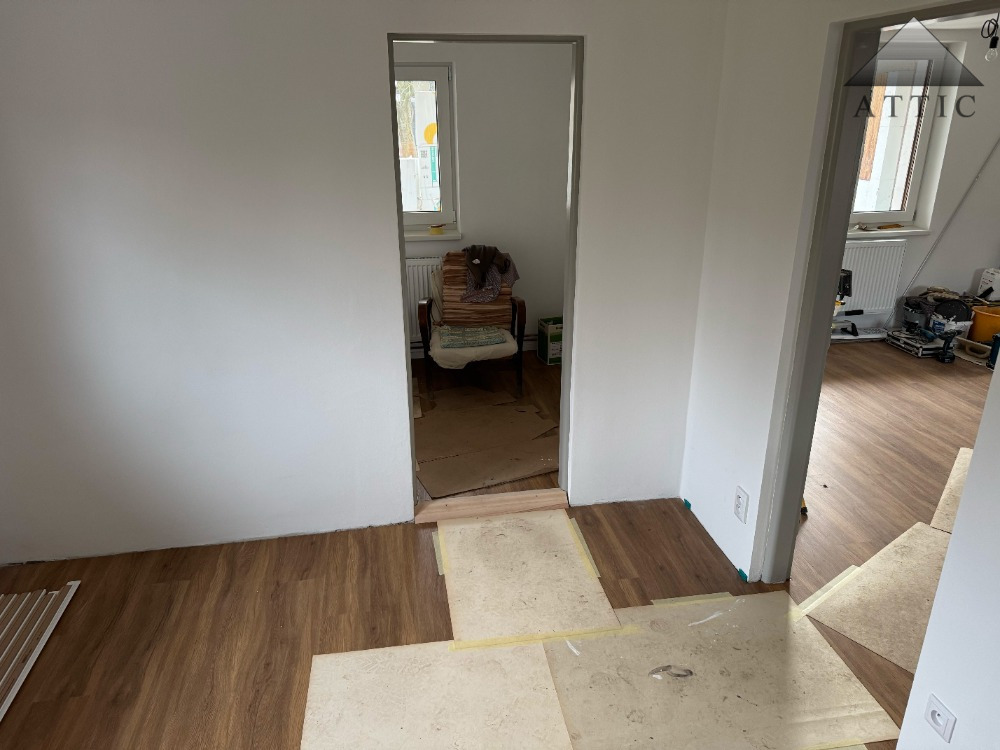 Nabízíme vám k dlouhodobému nájmu velmi pěkný, zcela zrekonstruovaný menší dům s velkou zahradou 972 m2 v klidné lokalitě Prahy 9, v Újezdě nad Lesy. Právě probíhá kompletní rekonstrukce včetně zateplení, izolace a zbudování kompletně nového interiéru. Dům má dispozici 3+kk (2+kk + pracovna) + zastřešená terasa. Do domu se vchází prostornou předsíní 5 m2, dále je menší hala 5 m2, ze které se vchází do koupelny 3,84 m2, která má sprchový kout, umývadlo s úložnou skříňkou, zrcadlo s úložným prostorem a přívod na pračku. Z koupelny se vchází do dveřmi odděleného WC s oknem na větrání. Z haly se jde i do obývacího pokoje o výměře 20,33 m2. Ten má novou, velmi pěknou a prostornou kuchyňskou linku s indukční varnou deskou, digestoří, pečící troubou, myčkou na nádobí a mikrovlnnou troubou. Může být dodána i lednice s mrazákem. Vedle kuchyňské linky je vstup do komory, kde je plynový kotel, kterým se topí a hřeje voda a zároveň je zde místo pro skladování např. trvanlivých potravin. Z obývacího pokoje se vchází do ložnice 9,3 m2 a odtud do malého pokoje (pracovny) o výměře 6,1 m2. Pokoje jsou průchozí. Dům bude k nastěhování po dokončení rekonstrukce v průběhu května nebo od 1.6.2026. Zastřešená terasa na jih do zahrady nabízí krásné venkovní posezení, v létě zastíněné vysokými stromy. Na zahradě jsou ovocné stromy s velmi dobrými plody (třešně, jablka, švestky), výborný vlašský ořech a spousta původních kvetoucích rostlin (zvonky, kopretiny). Z boku domu je vchod do sklepa o výměře 6 m2. Tento dům je vhodný pro dvou až tříčlennou rodinu, která si chce užívat naprostého klidu a velké plodící zahrady přímo v Praze. Je nutné se o zahradu postarat posekáním trávy a shrabáním podzimního listí. Parkování i více aut je možné na pozemku i před domem v ulici. Nájemné 29.000 Kč. Záloha na poplatky za elektřinu, plyn, vodu a odvoz odpadu je 5.000 Kč. Kauce 30.000 Kč, provize 29.000 Kč. Naprosto ojedinělé místo, nuto vidět, doporučuji prohlídku.