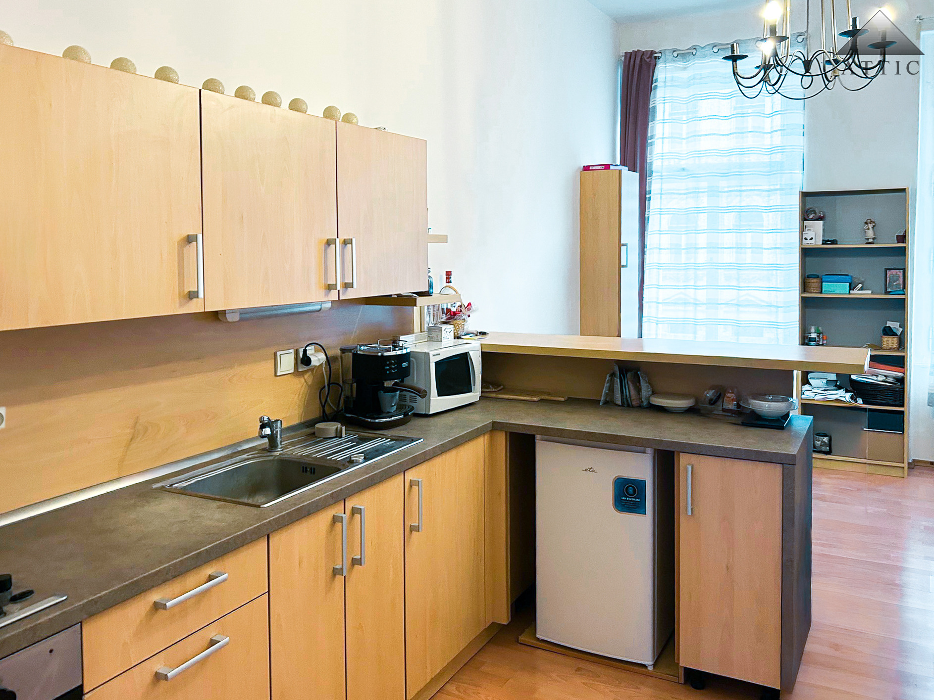 Nabízíme vám k prodeji pěkný světlý byt 2+kk o výměře 48,7 m2 v akraktivní lokalitě ulice Wenzigova, Praha 2, Nové Město. Byt je ve 3. patře (4. NP) činžovního domu s výtahem. Byt má nová dřevěná špaletová okna a nový vlastní elektrický kotel na topení i ohřev vody. Obývací pokoj s kuchyňským koutem o výměře 21,1 m2 má dvě okna na jih do ulice Wenzigova a ložnice 16,1 m2 je orientována na sever do klidného vnitrobloku. Samostatné WC s umývátkem (1,3 m2) je přístupné z předsíně (5,4 m2), stejně jako úložná komora (1,6 m2) s elektrickým kotlem. Koupelna o výměře 3,2 m2 má sprchový kout, umývadlo, topný žebřík, přívod na pračku a okno k přirozenému větrání. Fond oprav je 731 Kč. Atraktivní umístění, byt je vhodný jak na bydlení, tak na investici, na krátkodobé a dlouhodobé nájmy. Doporučuji prohlídku.