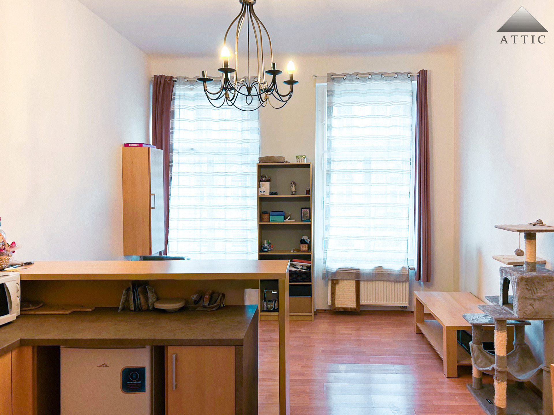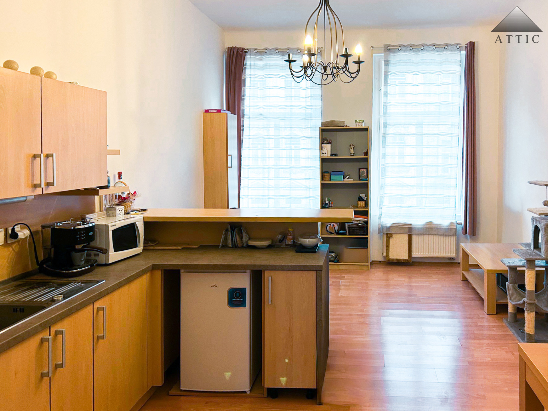Nabízíme vám k prodeji pěkný světlý byt 2+kk o výměře 48,7 m2 v akraktivní lokalitě ulice Wenzigova, Praha 2, Nové Město. Byt je ve 3. patře (4. NP) činžovního domu s výtahem. Byt má nová dřevěná špaletová okna a nový vlastní elektrický kotel na topení i ohřev vody. Obývací pokoj s kuchyňským koutem o výměře 21,1 m2 má dvě okna na jih do ulice Wenzigova a ložnice 16,1 m2 je orientována na sever do klidného vnitrobloku. Samostatné WC s umývátkem (1,3 m2) je přístupné z předsíně (5,4 m2), stejně jako úložná komora (1,6 m2) s elektrickým kotlem. Koupelna o výměře 3,2 m2 má sprchový kout, umývadlo, topný žebřík, přívod na pračku a okno k přirozenému větrání. Fond oprav je 731 Kč. Atraktivní umístění, byt je vhodný jak na bydlení, tak na investici, na krátkodobé a dlouhodobé nájmy. Doporučuji prohlídku.
